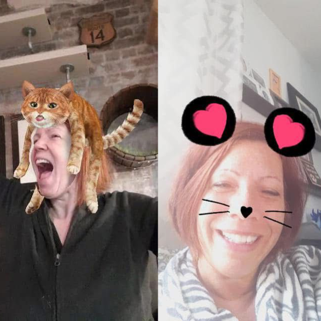 Fast forward to the right, and there I am: no longer shrinking, no longer bending to rules that never fit. The warrior version of me — the true me — standing in her power. And right there beside me? The same crew, only bigger, bolder, fiercer. Because our animals never doubted who we are. This is how they’ve seen us all along.
