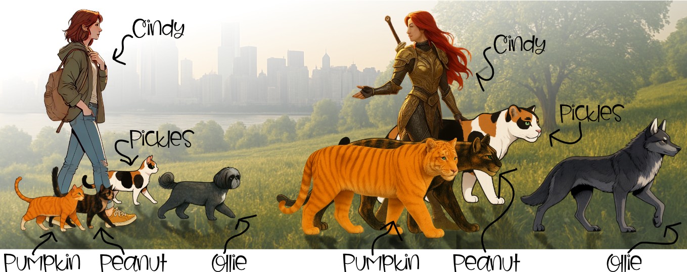 As my fascination and obsession with Pickles, Peanut, and Pumpkin grew, I kept trying to explain how I see myself with my cats — that they aren’t “pets,” but lions walking beside me.