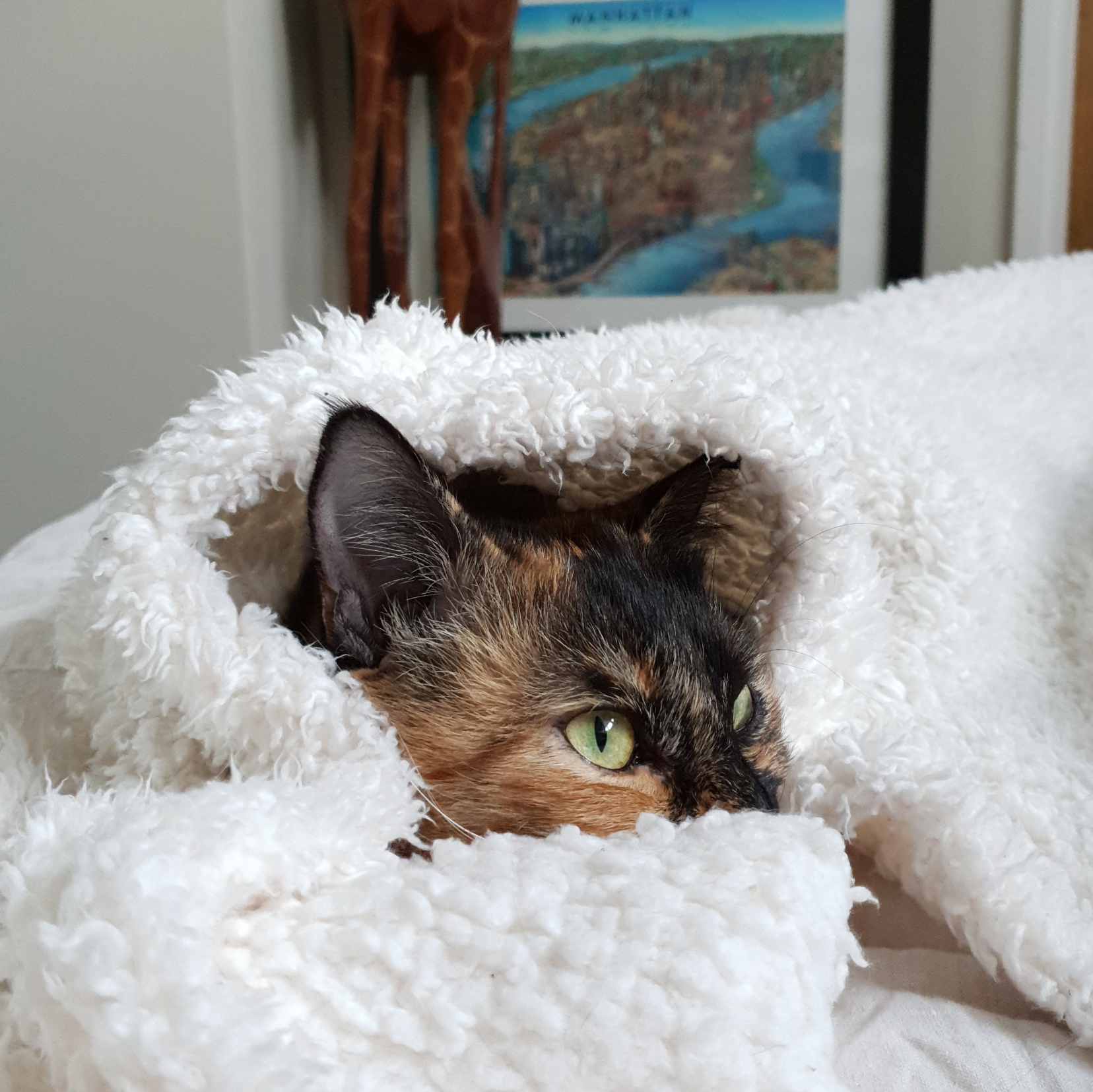 Beyond the warrior side, Pickles is also a skilled huntress, chasing shadows and toys with the same intensity she’d bring to the wild. And then, just as easily, she’ll flip into goofball mode — rolling around, making silly faces, or demanding belly rubs at the least convenient times. At the end of the day, though, her happiest place is always right by her mom’s side, curled up like she belongs there (because she does).