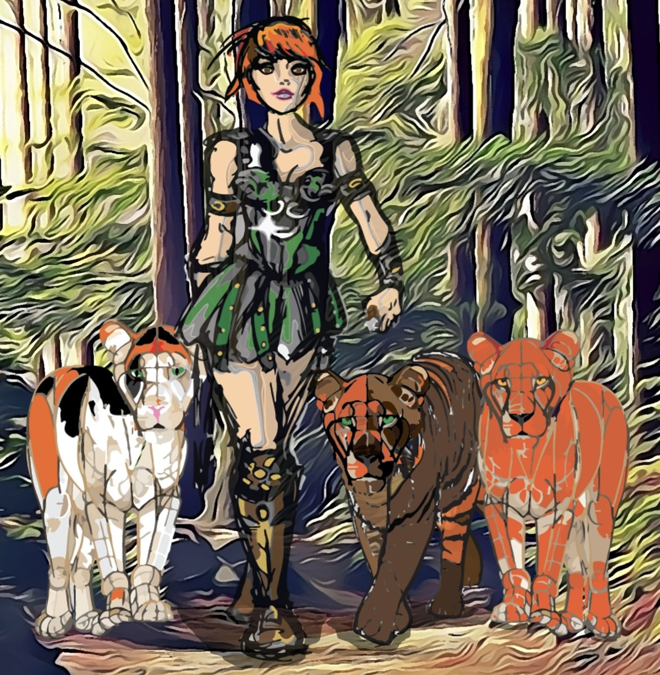 So, in 2017, bursting for my nearest and dearest to see what I felt, I sketched it out. Me, warrior mode. My fierce cats, lions.
